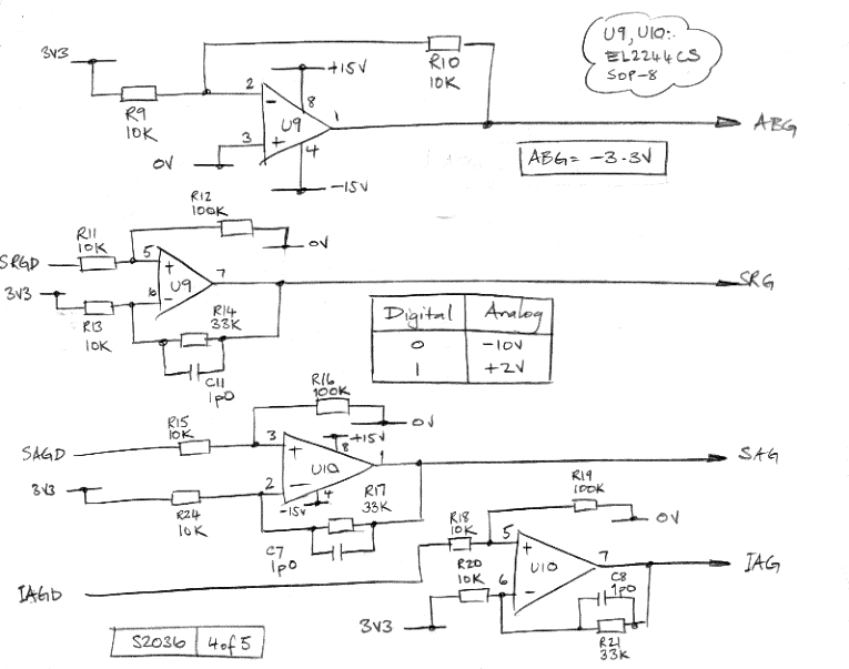 The A2036 proved to be vulnerable to ionizing radiation. Samples of the obsolete A2033 assembly, whose circuit is identical to that of the A2036, irradiated under +5 V power but without ±15 V power, operated normally after 20 krad plus four-week room-temperature anneal, but failed after 100 krad plus four-week room-temperature anneal. There were three causes of failure. First, the output voltage of the MAX6329 regulator (see schematic) rose by about 0.2 V at 20 krad and 1 V at 100 krad. Second, one of the DG411 switches (see schematic) was stuck open after 100 krad. Thirdly, one of the 74VHC123A monostable flip-flops (see schematic) was refusing to fire after 100 krad.
